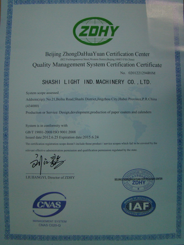 澳门永利皇宫官网主要生产经营各类中高档涂布及整饰设备,于1998年6月在全国造纸机械行业率先通过了ISO9001国际质量体系认证(2012年6月通过了ISO9001:2008版认证),先后成功实施了国家“双加工程”、“国家火炬计划”重点项目及第三批国债专项、2009年第二批新增中央投资重点产业振兴和技术改造专项。同时,公司还是科技部等四部委联合认定的国家高新技术企业,中国对外贸易经济合作AAA诚信企业、湖北省科技成果推广示范企业、湖北省科技先导型企业、湖北省纳税信用等级A级企业、湖北省科技型中小企业成长路线图计划重点培育企业、湖北省技术创新型试点企业、5S管理全行业样板、全行业节能减排优秀企业、市直重点骨干企业、纳税先进单位,荆州市重要的机电产品出口企业,拥有自营进出口权和省级企业技术中心。
