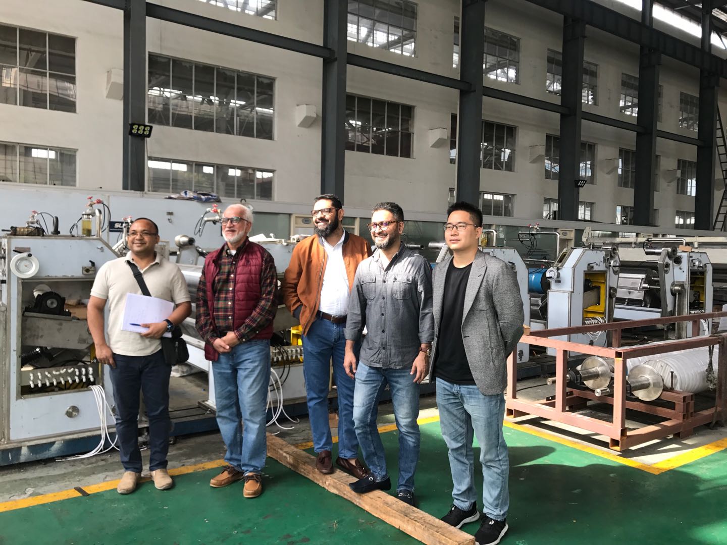 近日,由公司长期合作的广州代理公司牵头,我司迎来一家来自孟加拉的老牌纸厂代表团的考察访问。该纸厂生产主要纸种为双胶纸、书写纸类,此次有意为开发新纸种筹划设备。公司总经理彭宜纯和总工程师张晓磊亲自陪同,参与接待工作。双方在车间和会议室都进行了详细的讲解和沟通,客户对我司的设计能力和加工水平给予了高度的肯定,希望能就涂布机、澳门永利皇宫赌场和膜转移施胶机等产品展开进一步合作,尽快促成新项目的落实。