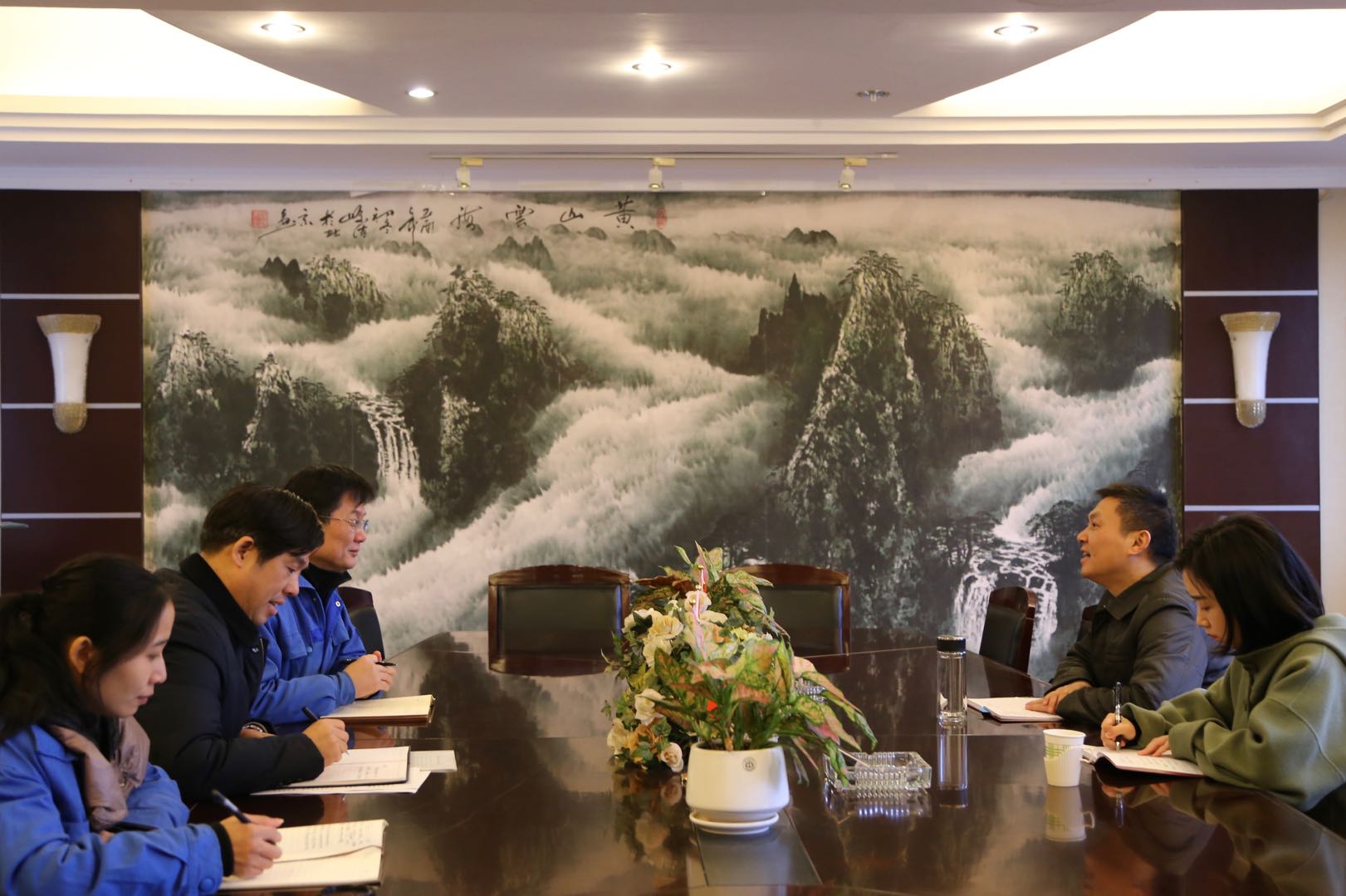 2019年11月26日下午,沙市区人民法院党组书记、院长邹应斌一行来公司考察调研,并与省人大代表、公司总工程师张晓磊进行了座谈交流,公司总经理彭宜纯陪同座谈。